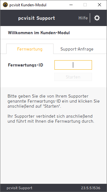 Beachten Sie bitte, dass für eine erfolgreiche Fernwartung eine stabil funktionierende Internetverbindung Voraussetzung ist.